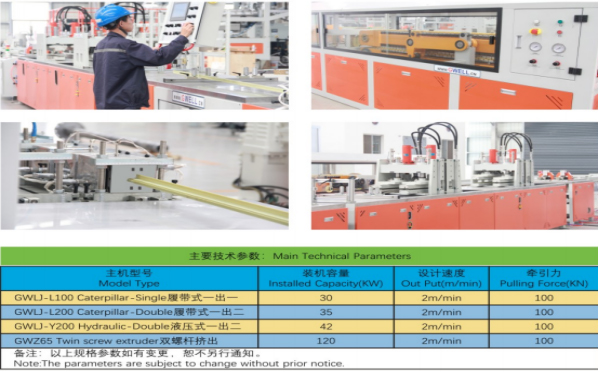 金韋爾公司結合國內外先進的拉擠技術,自主研發推出液壓式拉擠生產線和履帶式拉擠生產線,使用國內外知名品牌部件,為客戶打造品質穩定可靠、操作簡便、出高效一出二性能優越的光伏專用的邊框生產線。